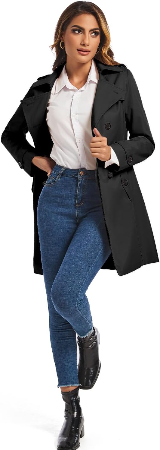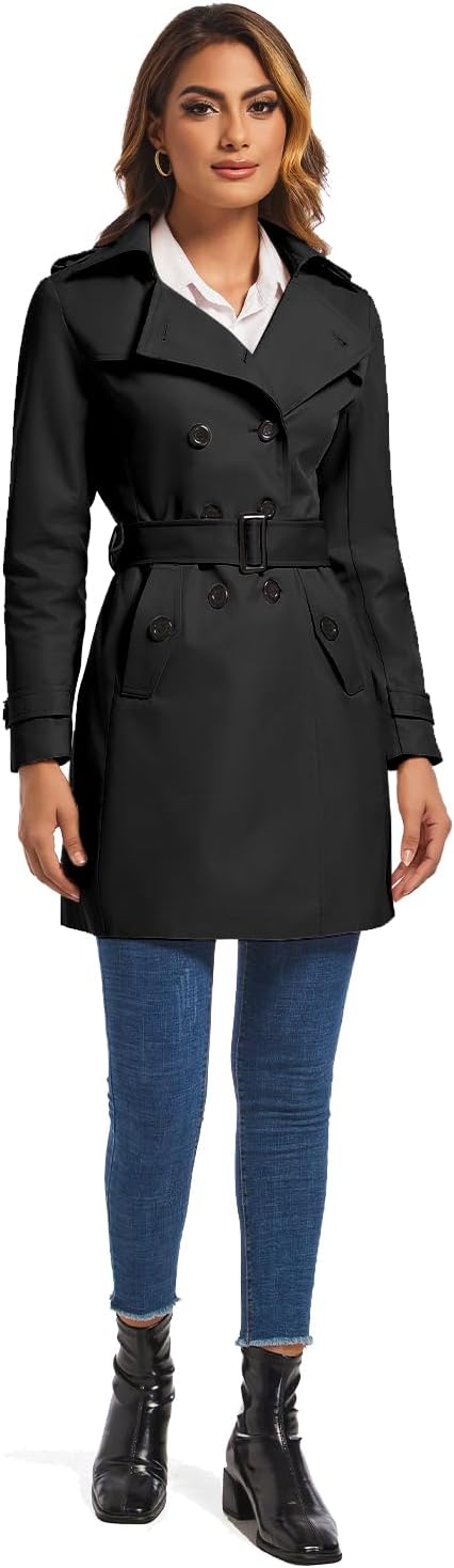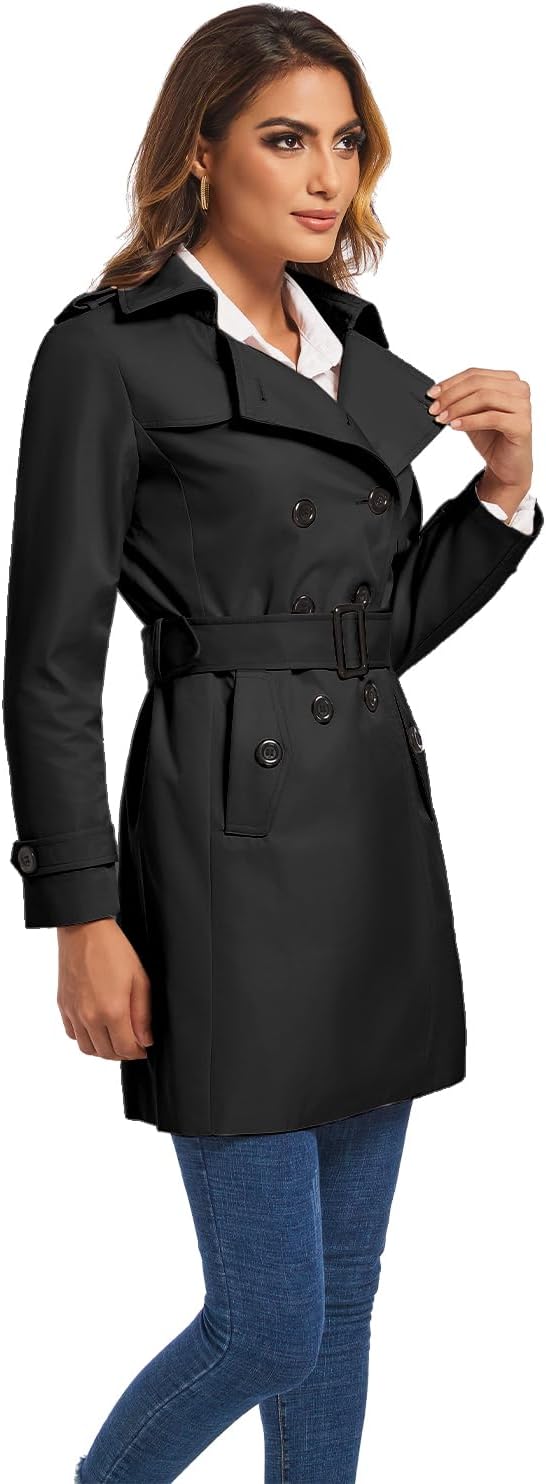 Women’s Double Breasted Trench Coat Water Resistant Windbreaker Classic Belted Lapel Overcoat